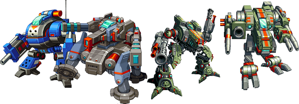 No one mech is alike. You are able to choose various individual parts from multiple default mech builds and combine them into an unstoppable force. Trade resources and your own mechs parts in favour of others, or blow them off of another mech and steal them. The choice is yours.